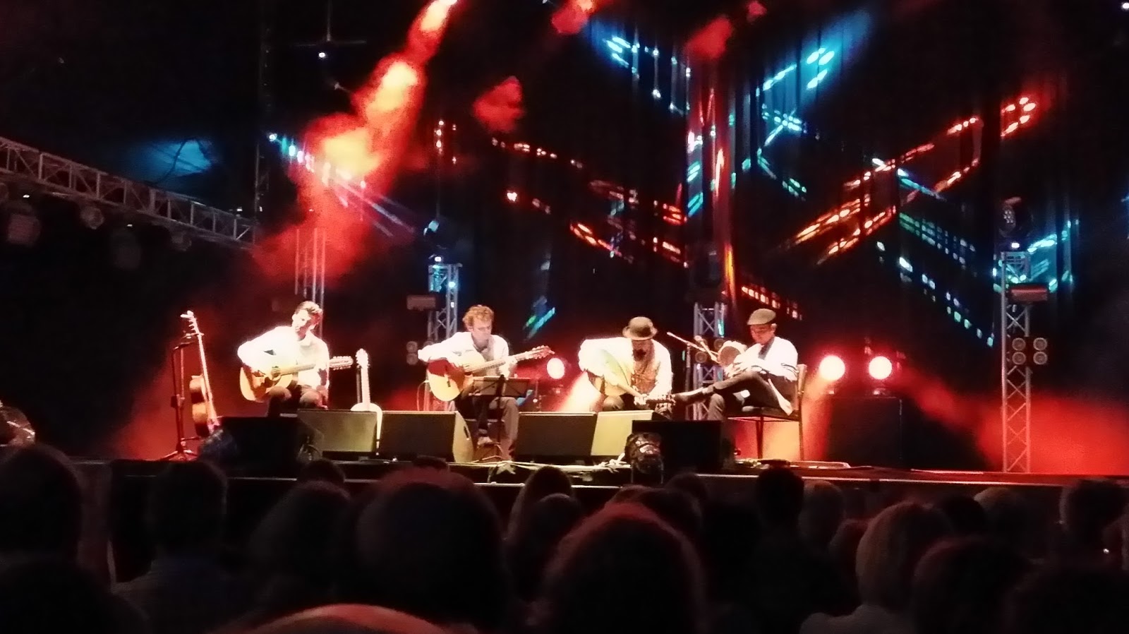 opened their concert at the Chevron Festival Gardens in relaxed style, one foot resting on a knee to cradle their instruments.