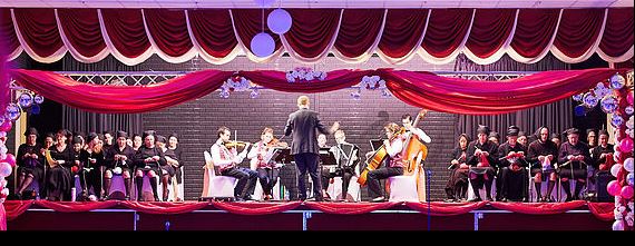 | Conductor Chris van Tuinen with eight-piece and chorus |