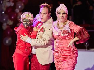 Director Thomas de Mallet Burgess rented the suburban Italian Vasto Club and enlisted a group of nonne from the nearby retirement village to lend an organic feel to the chorus. Conductor Chris van Tuinen arranged the score for an eight-piece ensemble with accordion adding cabaret flavour. Sally Phipps’ wedding set and costumes were awash in pink from balloons to wigs and even pink waistcoats for the orchestra.