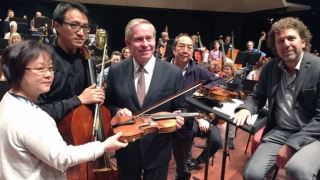 | Colin Barnett and Asher Fisch, with three Chinese musicians in WASO |