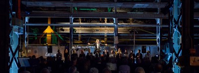 The final surprise on the program was three percussionists who literally played the building, starting in the scaffolding and working their way to the front of the stage for a train inspired adaption of Argenziano’s Stinkin’ Garbage. Industrial noise mingled with whistles and shouts to reconstruct the sounds of the venue in its workshop days. The evening closed with Mozart’s Divertimento in D, directed with finesse by Wright. The sparse phrases of the slow movement in particular can be so unforgiving but they were immaculately contoured – the epitome of elegance and the sign of a tight ensemble.